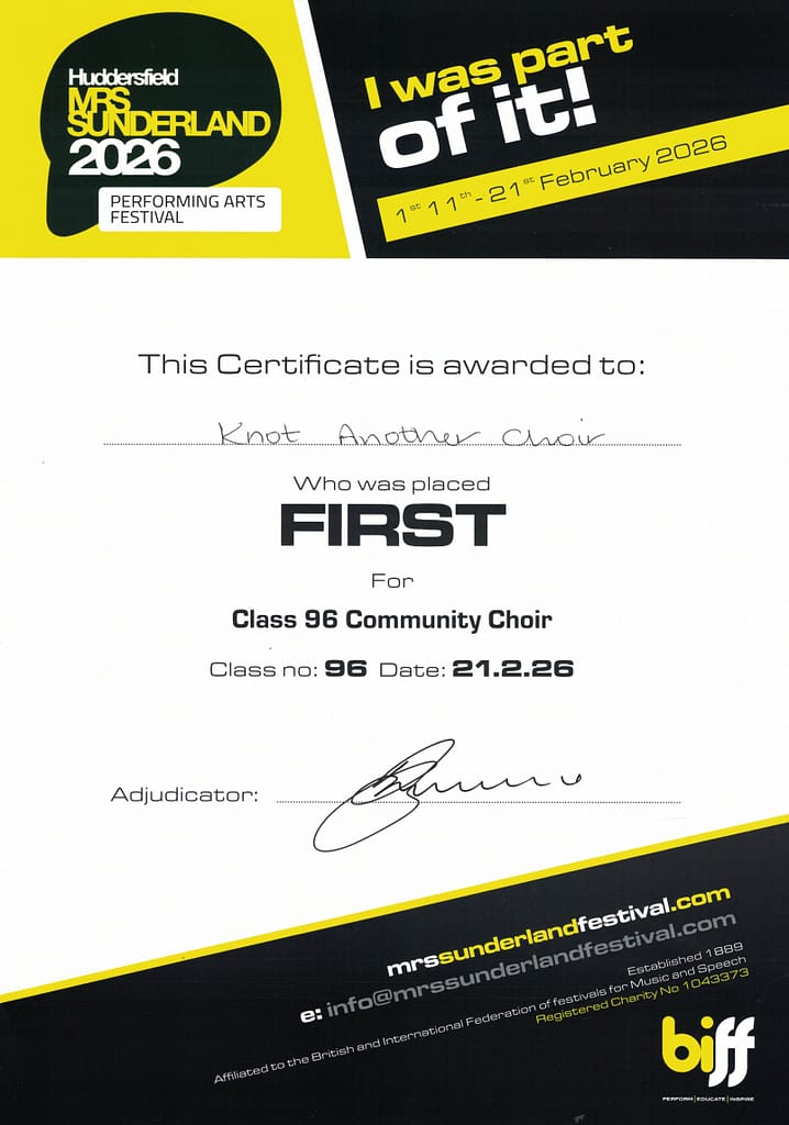 We are absolutely thrilled to share that our debut was met with outstanding success: we won both classes we entered: Community Choir – All ages and Adult/Mixed Age Choir and were honoured with two magnificent trophies: The John Crowther Trophy and The Joseph Hancock Trophy. This unforgettable achievement is a testament to our dedication, passion, and love of music, and it marks an exciting milestone in our journey.
